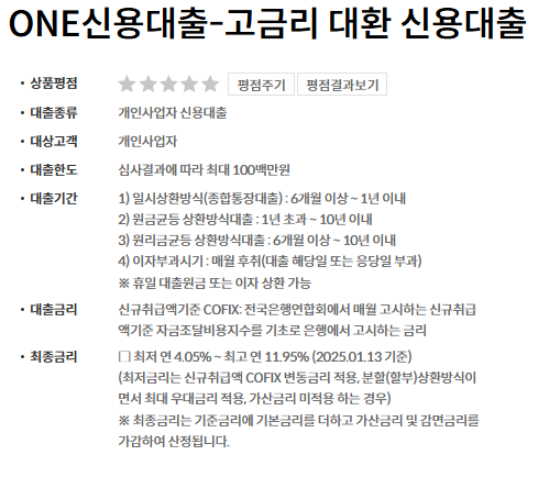 최저 연 4.05% ~ 최고 연 11.95% (2025.01.13 기준)
